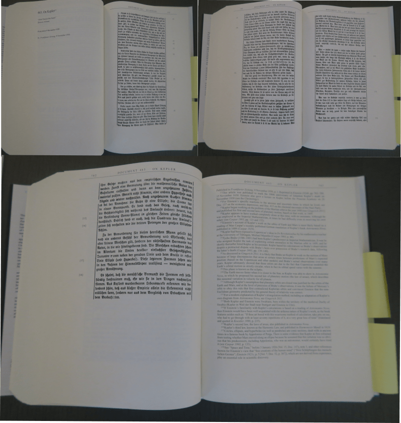I had vaguely remembered reading somewhere that Einstein originally discussed Kepler’s idea in a newspaper article, which upon a quick google search before my visit to EPP, turned out be an article written by him on 9 November, 1930, titled, “Über Kepler” (in german). The most recent published volume in EPP had just covered Einstein’s works until 1930. I got lucky to be able to find the article that I was looking for. The images I took from the book are attached below.