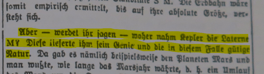 In Über Kepler, the phrase used by Einstein to describe Kepler’s work is shown below (highlighted).