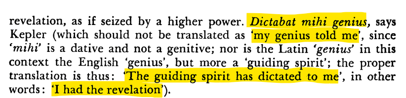 Now that we have gone spanned 1964 to 1930, one might ask: how far can we go further back to trace back the quote on Kepler’s genius?
